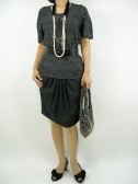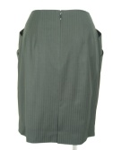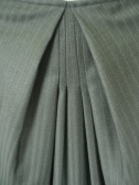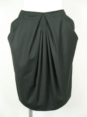 ストライプのタイとスカート。ポケットを横に張り出させ、前にタックを寄せているので腰周りはふんわりします。