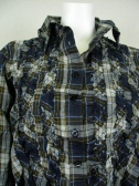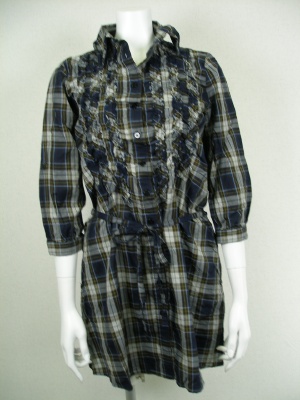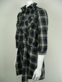 キャサリンハーネルのシャツチュニック。前開きタイプ。ネイビー×茶×白のチェック柄。