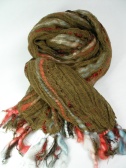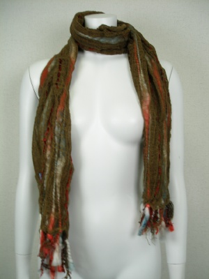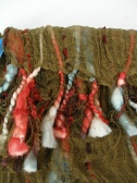 細い糸をルーズに編んだ所に、いろんな太さや質感の毛糸をさらに編み込んであります。ざっくりとナチュラルなイメージ。