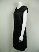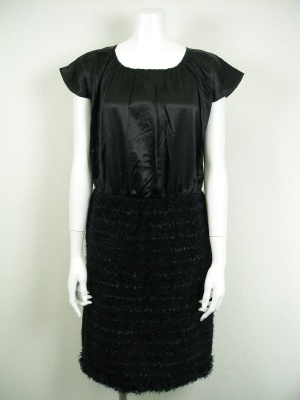 スカートは起毛したニット、トップスは綿・シルクで光沢のある素材。スカートには裏地付き。