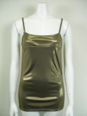 シャイニーな長めタンクトップ。ダークカラーになりがちな秋冬服のインナーに。