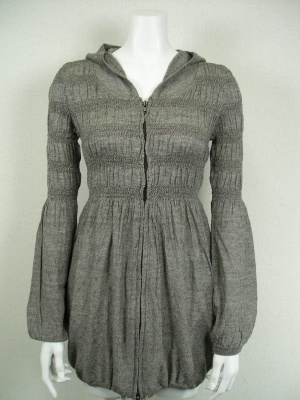 細い糸でサラリと軽いニットパーカ。バストの下あたりまではタイトで下はふんわりしたシルエットがスッキリ見せてくれます。
