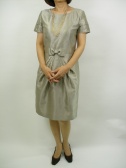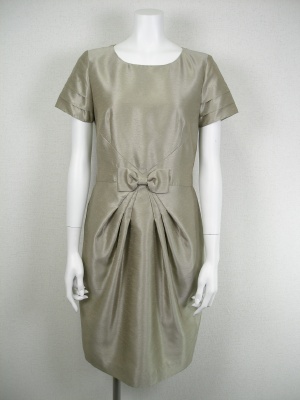 光沢あるシャンタン地を使用、ウエストのリボンがポイント。合わせるジャケットはボレロによってきちんとした席にもOK