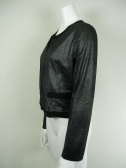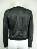 皮革のように見える生地(ポリエステル)でとても柔らかく薄手なのも特徴、軽く羽織れるライダース風