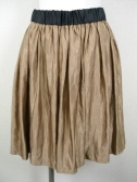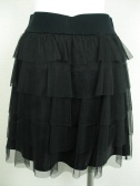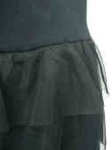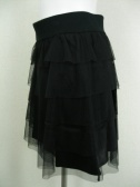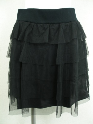 ウエストゴム、チュールのティアード、下は光沢ある生地を重ねたデザイン