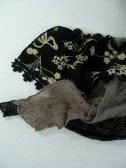 柄と無地の異素材の生地を縫い合わせて片方にレースのトリミング。ボリューム感も出ますし、アレンジの仕方で色々変化する