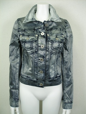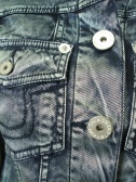光沢あるレーヨン系の生地をブリーチしたおしゃれなGジャン、ツルッと艶感のある生地