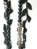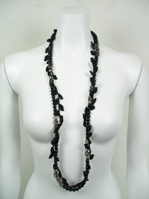 樹脂パーツとリーフ型リボンを組み合わせたロングネックレス。