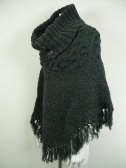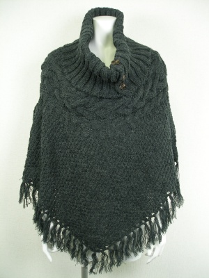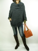 ざっくり編まれたニットポンチョ。大きなオフタートルがポイント。