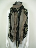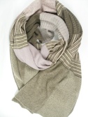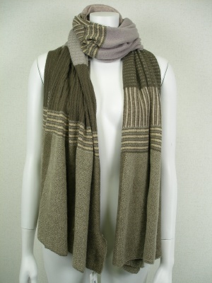 柔らかいウールの大判マフラー。いろんな柄がパッチワークのようにつながっています。