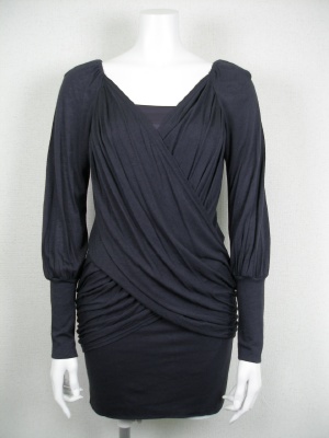 タイトなミニ丈キャミワンピとドレープカットソーのセット。