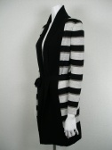サラリとして細身のロングカーディガン。黒×ライトグレー×モカのシックな配色。