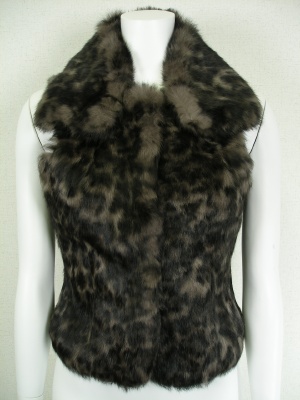 レオパード柄のラビットファーベスト。大き目の襟がキュートです。