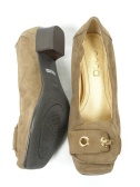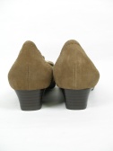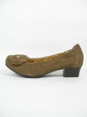 大きなバックルがクラシカルなスウェードのパンプス。太いローヒールでとても履きやすい。