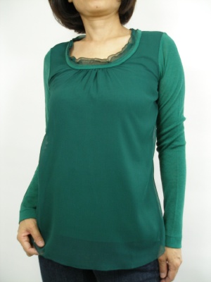 前身ごろだけシフォンを2枚重ねしたカットソー、きれいな色でパープルは写真が青くなってますがきれいな紫色です
