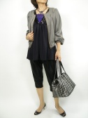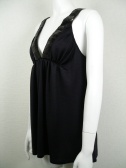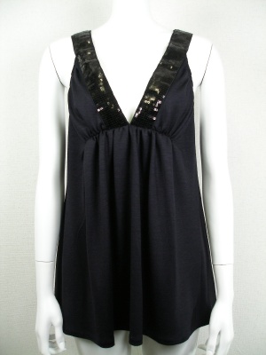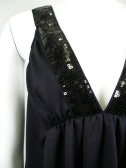 黒に近いパープルで襟元はスパンコールが施してあります。バスト下の切り替えで後ろは一部ギャザー寄せ