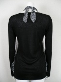 カシミヤ入りの着心地の良いカットソーにシフォンを重ねてあります。一枚でもサマになりますし、かさばらないのでジャケットのインナーとしても重宝。