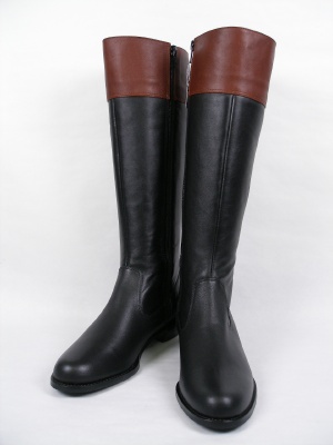 シンプルで履きやすいジョッキーブーツ。(乗馬ブーツ)黒×ブラウンの配色。