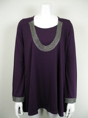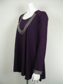 メタルメッシュのような糸でネックレス風の飾りをつけてあります。身ごろはゆったりAライン。
