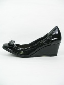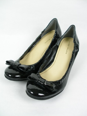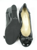 ウェッジソールでとても履きやすいパンプス。エナメル靴はカラータイツによく合います。