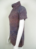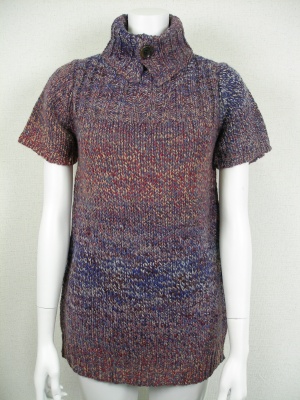 いろんな色がミックスした毛糸を使った自然なグラデーションがキレイなニット。ネックのボタンを外すと違った表情に。