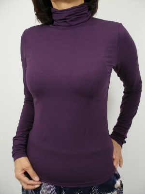 すべすべした肌触りで、ストレッチの効いたタートルカットソー。長いネックとお袖はクシュクシュたるませて。