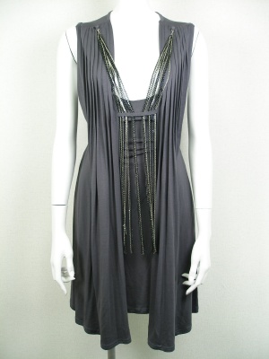 ミニワンピースにロングジレを重ねたようなデザイン(脇でつながっています)。垂らしたチェーンは肩の所で取り外せます。短めですのでタイツやレギンスを合わせて。
