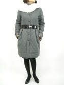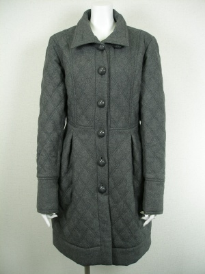 キルティングで薄く中綿が入っています。大きな丸いボタンやウエストのタックがレトロ可愛いコート。