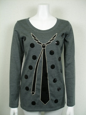 ネクタイの部分は別素材を使いゴールドの糸で縁取りしています。ドットはスパンコール。