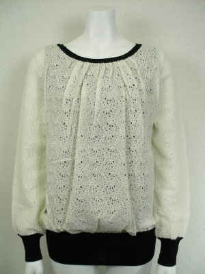 繊細なウールレースのロングニット。身ごろは内側に薄手のニットを付けているので透けません。