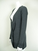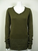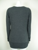深いVネックのロングニット。タンクトップやタートルなど、インナーをいろいろ変えて着まわせます。