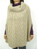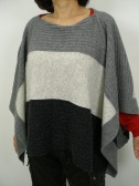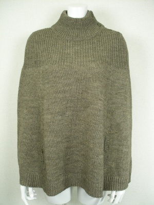 すっぽりかぶるニットポンチョ。腕を通す穴を使わない場合はボタンで閉じておきます。