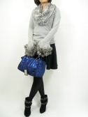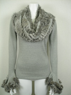 ネックウォーマーとフレアになった袖口にはラビットファーを編み込んであります。