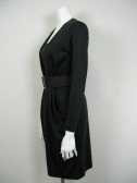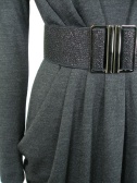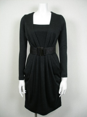 前はウエストでタックを寄せ、後ろはシェイプするようダーツを。その為ベルトを外してもふんわりせずシャープなラインを保ちます。ラメ入りゴムベルトとペチコート付き。