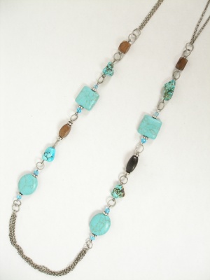 天然石やウッドビーズを使ったロングネックレス。