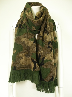 マフラーとストールの間のような、ふっくらした素材感の迷彩柄ストール。