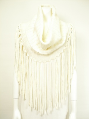 長いフリンジが個性的なニットのスヌード。