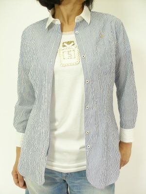 清潔感のあるクレリックシャツですが、シワ加工でカジュアル感もプラスされています。