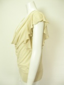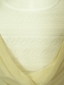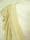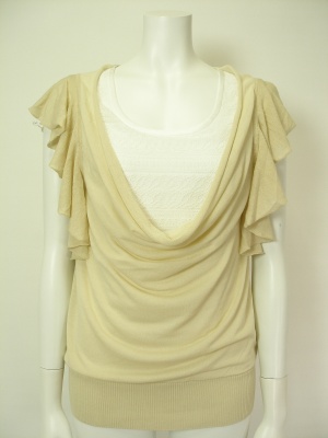 ドレープがエレガントなニットに、レーシーなインナーを重ね着したようなデザイン。