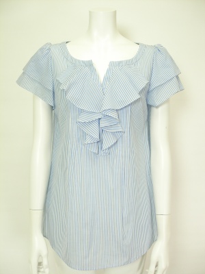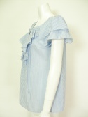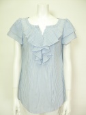 胸元とお袖のフリルが可愛いストライプのブラウス。