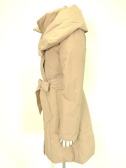 大きな襟と絞ったウエストがエレガントな印象のダウンコート。