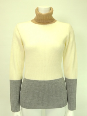 イタリアの老舗LANA GATTO社のエクストラファインウールを使用した、配色使いのリブニット。