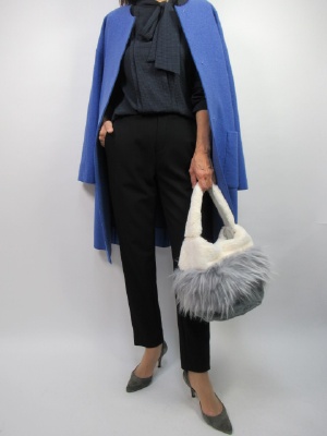 今年流行りの同系色コーデはグラデーションの色使いがお洒落に着こなせる。ボウタイはよく見ると千鳥格子の柄ブラウス。アウターに明るめのグレーをさし色にしてお洒落に演出!スタイリッシュ度80%、エレガンス度20%。