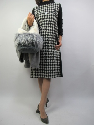 前身ごろが千鳥の柄のお出かけワンピース。子らからの時期お呼ばれなど多く成りますね。一枚できちんとして見えるワンピースはとても重宝します!エレガンス度80%、フェミニン度20%。