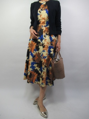 お出かけのワンピースは裾広がりびAラインシルエット・・・。甘口が上品でエレガントですね。シンプルナカーデさえあればお出かけにピッタリです!エレガンス度80%、フェミニン度20%。