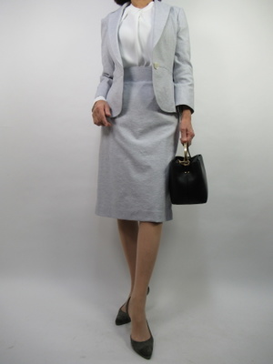 お勤めの方やキチンとしたスーツは必需品。でもこれからの季節には洗えるものは助かりますね。タイトのすっきりした上下のスーツは薄いグレーでどのシーンにも合わせやすい一着です!エレガンス度100%。