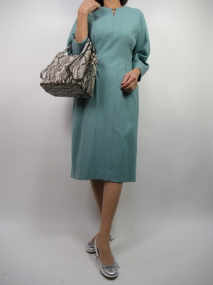 春になりコートを着なくても過ごせる日が多くなりました。ワンピースは一枚できちんと感が出て重宝します。薄いブルーの春らしい一着です!エレガンス度70%、フェミニン度30%。