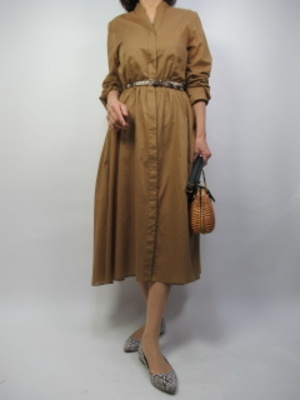 ウエストを絞るタイプのシャツワンピース。勿論、羽織にもなりますしボトムスと重ねてコーデもできますが、今回は一枚でワンピースとして着用しました!エレガンス度70%、フェミニン度30%。