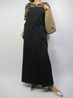 大人っぽく着こなせるジャンスカ。中に柄のブラウスでシックにまとめました。大きめのカゴバックが全体を引き締めて大人のカジュアル、デイリーコーデです!アクティブ度70%、スタイリッシュ度30%。