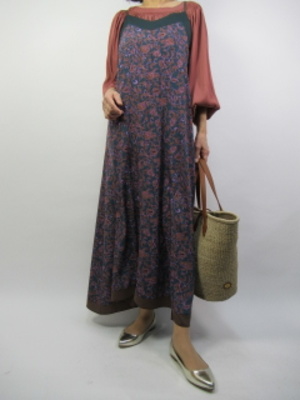 花柄のプリントがお洒落なジャンスカにプリーツブラウスを合わせてソフトなフェミニンスタイルにしました。柔らかい生地なので着ていて楽なのも良いですね!フェミニン度70%、カジュアル度30%。